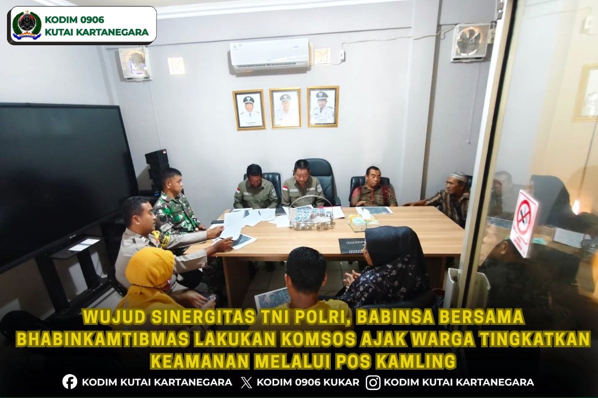 Kutai Kartanegara. updatenews86.com- Jaga stabilitas keamanan dan ketirtiban yang ada di lingkungan masyarakat, anggota Koramil 0906-02/Loa Kulu Serma Siswanto bersama bhabinkamtibmas lakukan kegiatan komsos dengan perangkat desa dan warga bertempat di ruang aula yang berada di Desa Jongkang Jalan Mangkunegara rt 3 Kecamatan Loa Kulu, Rabu 15/4/26.